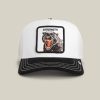 Serving Blue Steel realness, but make it farmyard chic. This fox-faced trucker is all smolder, less duck face—runway ready whether it’s Milan or the gas station parking lot.
