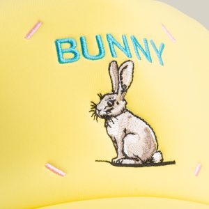 Bright yellow up front, soft pink mesh in back, and the word BUNNY stitched loud and clear above a calm, alert rabbit. It reads playful at first glance, then smarter the longer you look. Light on the head. Easy on the eyes. Built for everyday wear with a fit that stays put when things start moving.